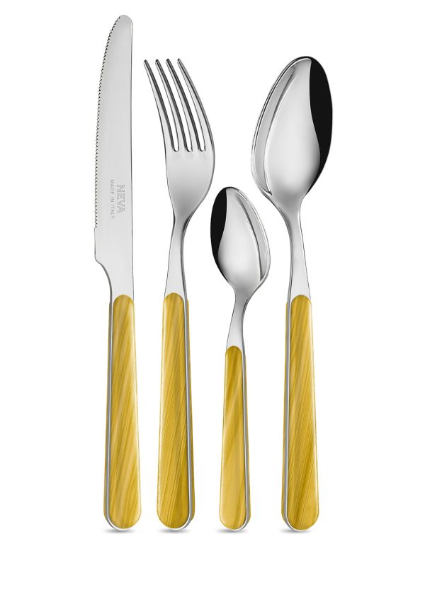 L’effetto legno reso ancora più trendy grazie a colori vivaci e di tendenza che renderanno la vostra tavola unica! Acciaio inossidabile e manicatura decorata in sublimazione indelebile effetto legno, garantita al lavaggio in lavastoviglie.