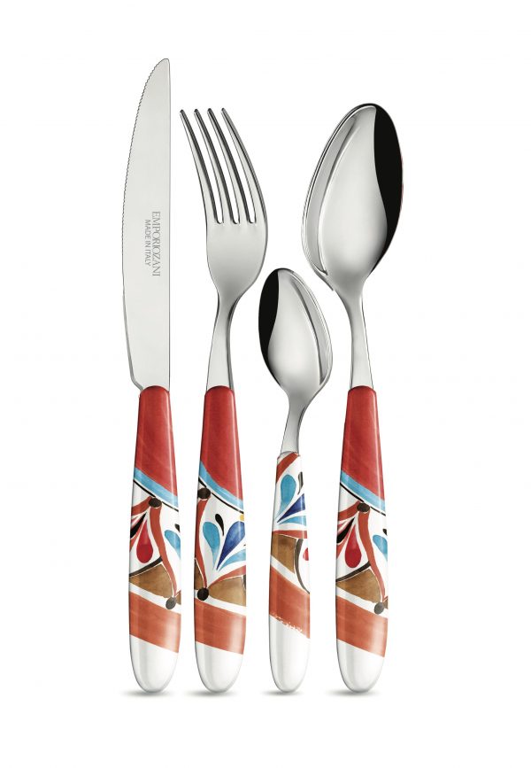 Confezione di posate in acciaio con manico colorato Touch-Mel. 6 posti tavola completi di forchetta, coltello, cucchiaio e cucchiaino da caffè.